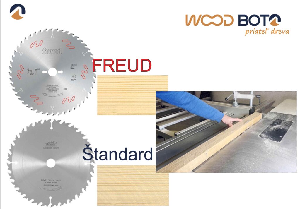 Pozrite si priame porovnanie kvality rezu konvenčného kotúča s touto špecialitou od firmy FREUD. 🛠️