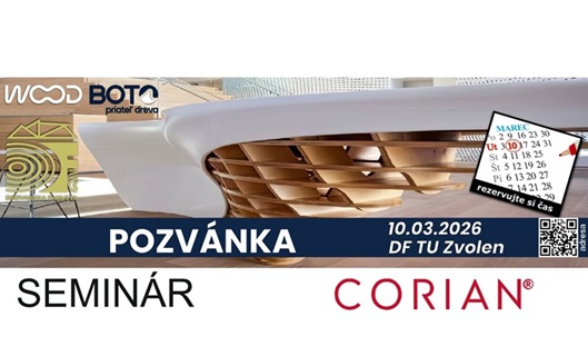 Pozývame Vás na univerzitu do Zvolena na odborný seminár, počas ktorého kombináciou prednášok a reálnej demonštračnej výroby predstavíme možnosti návrhu a výroby tvarových plošných dielcov, so zameraním na Corian®. Seminár sa uskutoční 10. marca 2026 na pôde Drevárskej fakulty, Technická univerzita vo Zvolene. Účastnícky poplatok: 35,- eur. Program: Plošné tvarovanie v nábytkárskej praxi Odborný garant: …