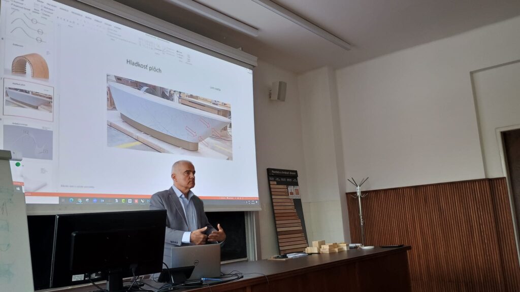 Okrem analýzy fyzikálnych vlastností bol kladený dôraz aj na estetické a konštrukčné aspekty dreva ako udržateľného materiálu 21. storočia. Študenti mali možnosť skúmať rozdiely medzi domácimi ihličnatými a listnatými drevinami, pričom pozornosť sa sústredila najmä na ich správanie v špecifických podmienkach moderných drevostavieb. Expertný výklad Ing. Bršela prepojil teoretické znalosti s aktuálnymi trendmi v oblasti CLT panelov a inovatívnych povrchových úprav, ktoré predlžujú životnosť interiérových prvkov.